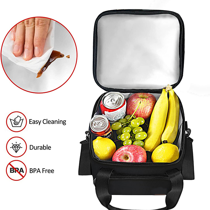 - The lining is LEAKPROOF food-grade PEVA foil, which is safe and durable. The 4mm EPE can keep your food at optimal temperature for more than 4 hours. The smooth dual SBS zippers allow you put in and take out food horizontally.